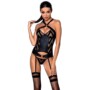 O espartilho de couro ecológico Hima tem uma combinação original que decora as juntas em forma de círculos. Adicione a isso suas meias favoritas e pronto! Uma edição clássica de espartilho com caráter erótico!